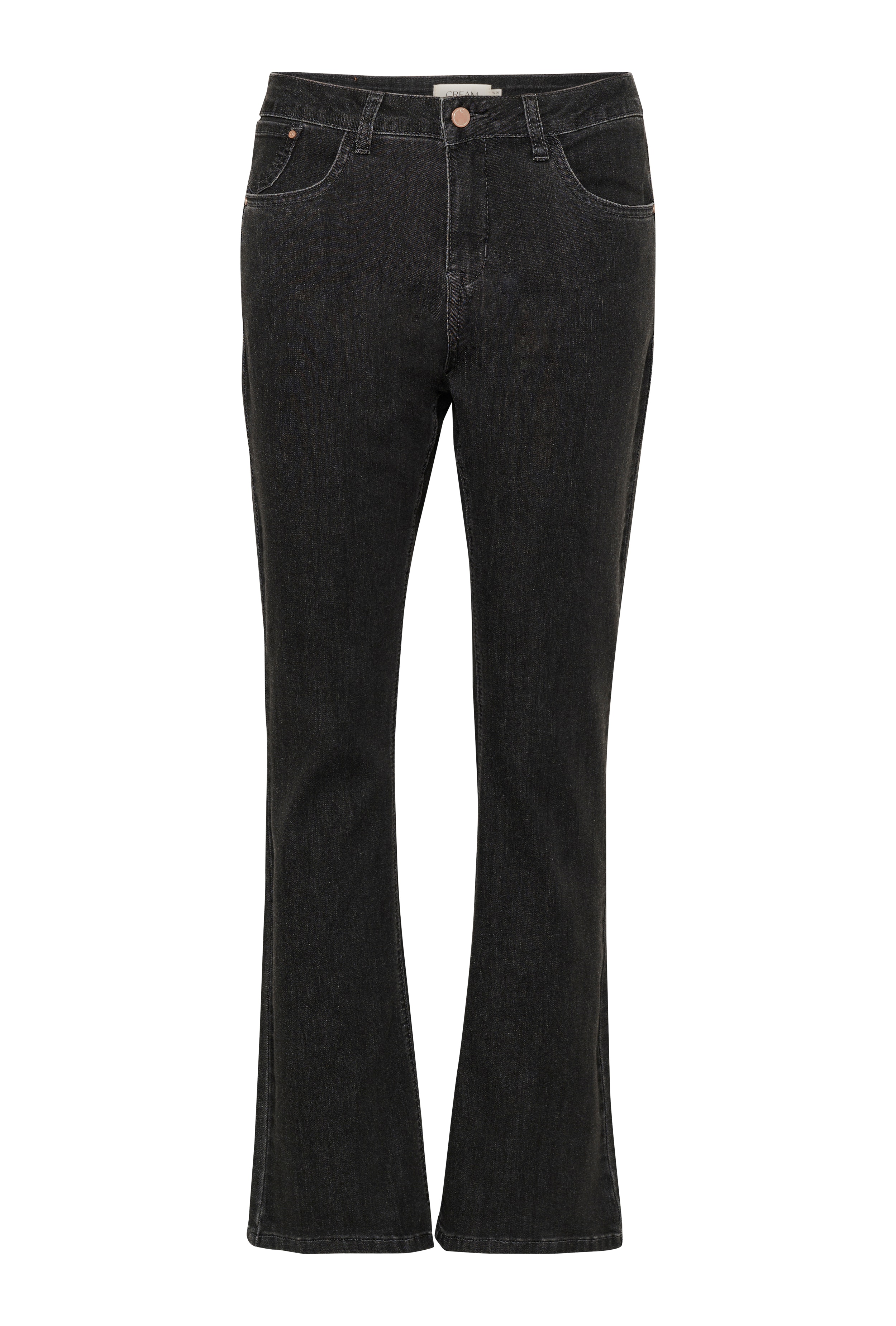 Flared jeans til kvinder giver en flatterende pasform med klassisk 5-lommers design og komfortabelt stretchmateriale. Den mellemhøje talje og let udvidede ben giver alsidighed til hverdag og forskellige lejligheder.