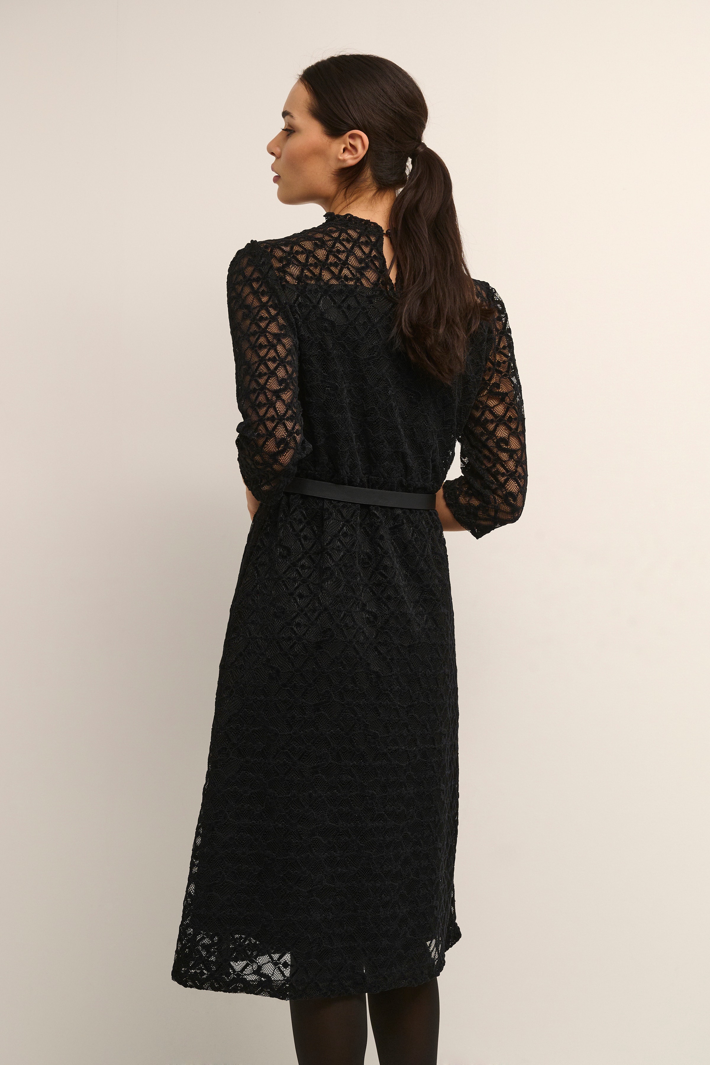 Midi-Spitzenkleid mit sanft ausgestelltem Rock, halbtransparenten 3/4-Ärmeln, tailliertem Sitz dank Gürtel und dezentem Keyhole-Ausschnitt.